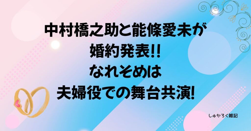 2025年11月10日に歌舞伎界のプリンス中村橋之助さんと元乃木坂46能條愛未さんの婚約が発表されました。都内のホテルでの金屏風前で行われた華やかな婚約発表会見が話題になっていますね。 この二人は2021年の舞台「ポーの一族」での夫婦役での共演がきっか... -