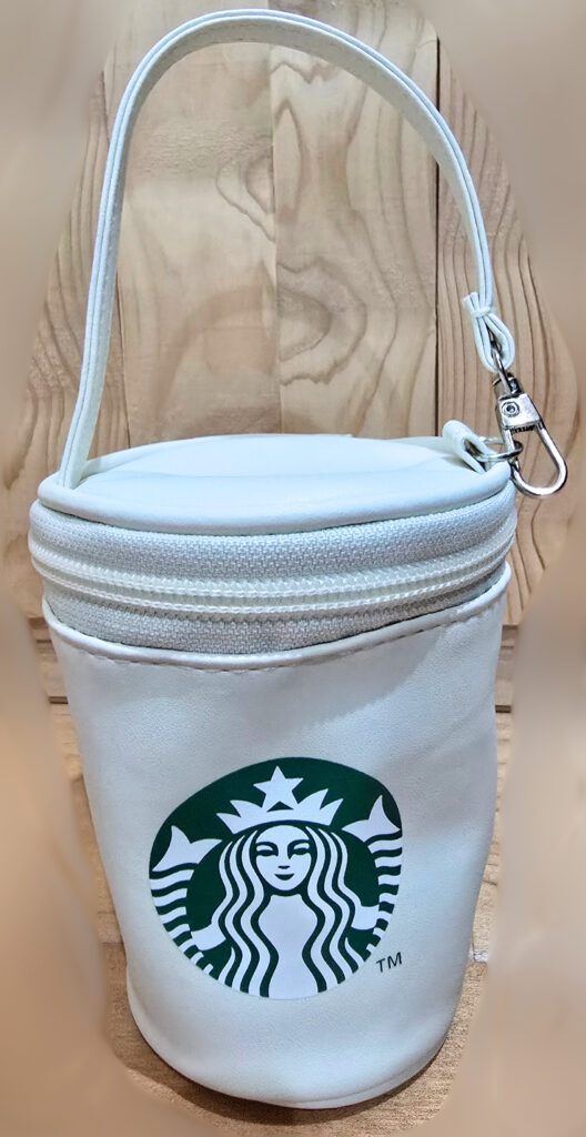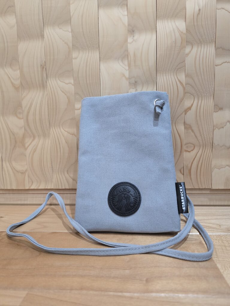 サコッシュはタンブラーを入れることもでき、裏にファスナー付きポケットもついていました。紐もあるので斜めにかけることもでき、ちょっとしたおでかけに便利そうです。