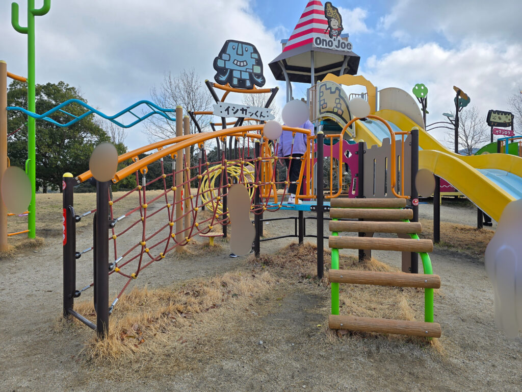 ローラー滑り台があるほうの遊具に比べて少し小さめで遊びやすくなっています。高さもそんなに高くないので、大きな遊具が苦手な子どもでも安心して楽しむことができると思います。