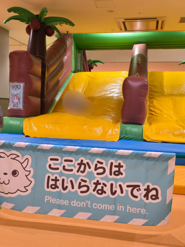 などがありました。特に、すべり台が楽しかったようで、何度も何度も滑っていました。横に広いので、2人でも余裕で滑ることができました。