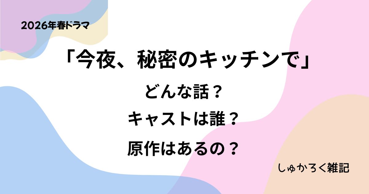 今回は、2026年4月スタートのドラマ「今夜、秘密のキッチンで」について調べてみました。このドラマは、ドラマと漫画が同時進行で展開されていくという今までにない形のドラマとして話題になりました。ドラマと漫画の骨組みは同じであるものの、それぞれの特徴を生かして2つの異なる物語が同時進行で展開されていきます。